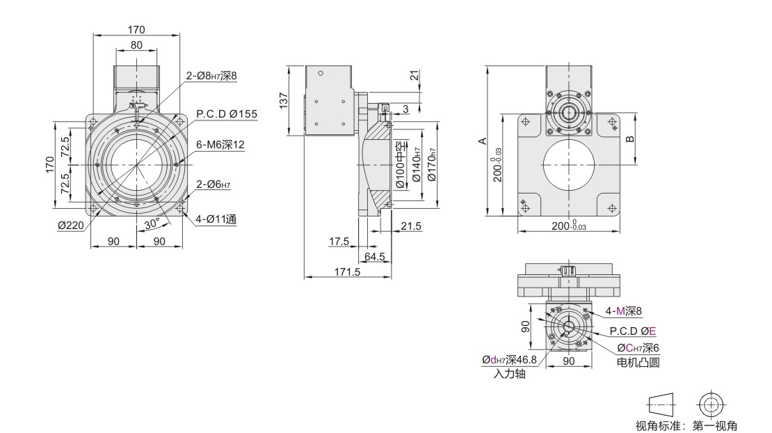 直角一体型中空旋转平台 外形尺寸200