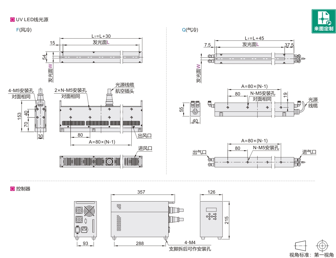 | NHT52 | UV LED线光源 | 风冷/气冷 | 铝合金 | 银色阳极氧化 |