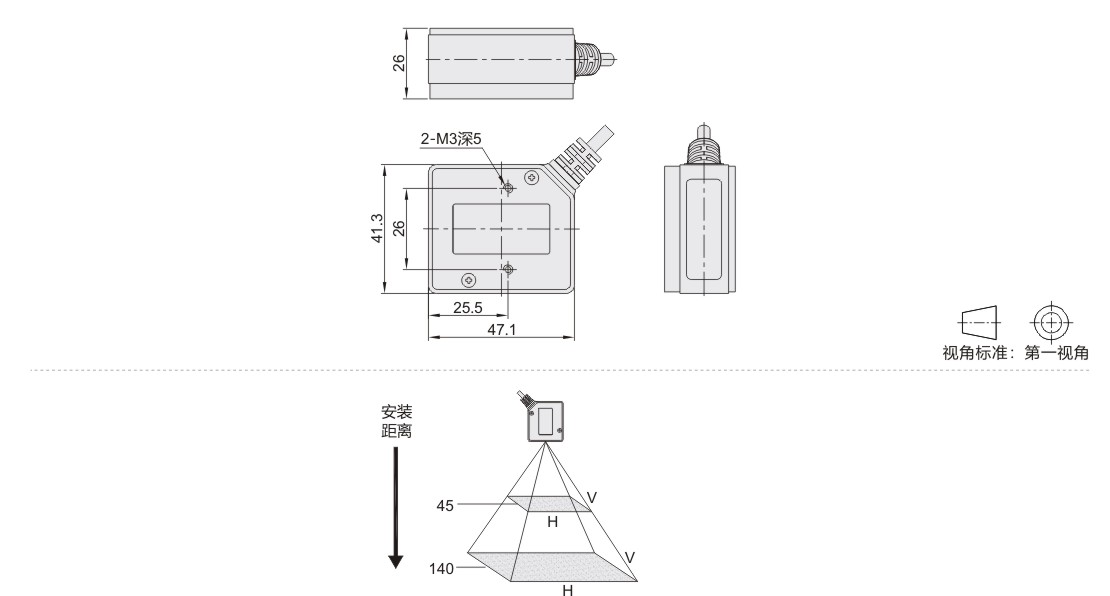 | 安装距离(mm) | 视野H(mm) | 视野V(mm) | 最小分辨率(mm) |