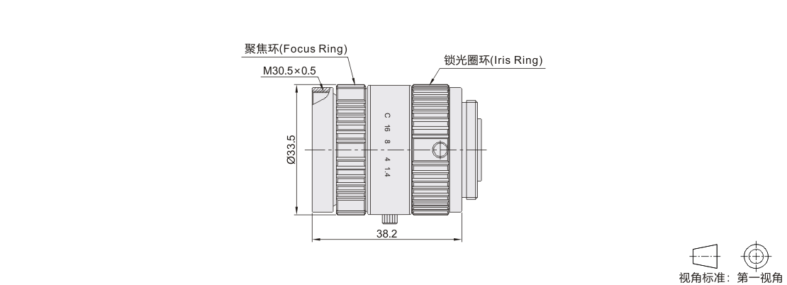 配有聚焦 、光圈锁定螺丝。