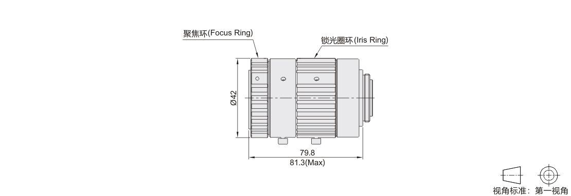 | 代码 | 焦距 | 光圈 | 工作距离 | 失真 | 滤片尺寸 | 外观尺寸(mm) | 重量(g) | ||