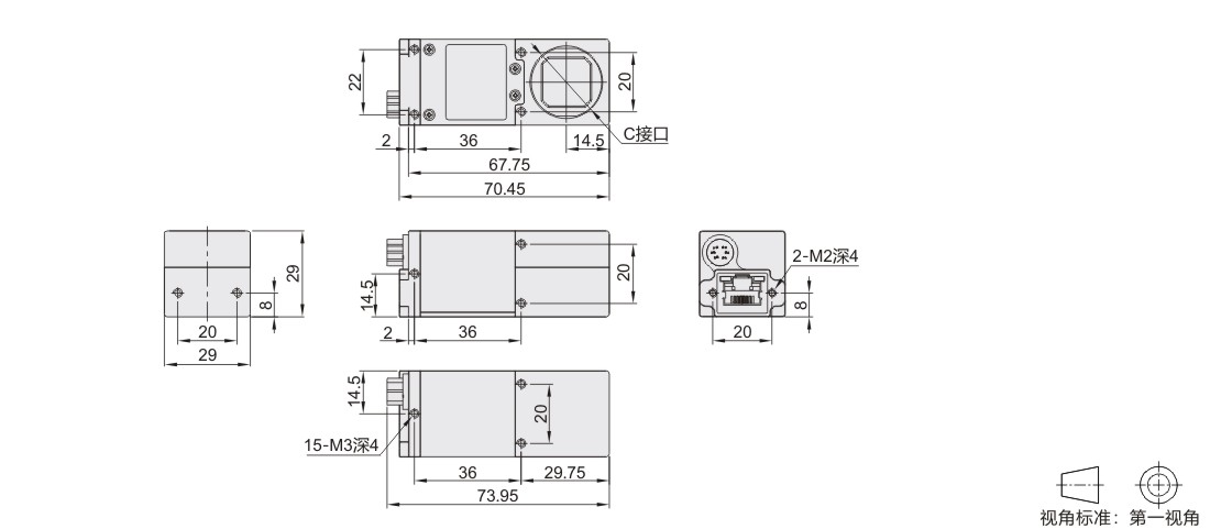 怡合达自营 工业面阵相机 直角型 GigE接口