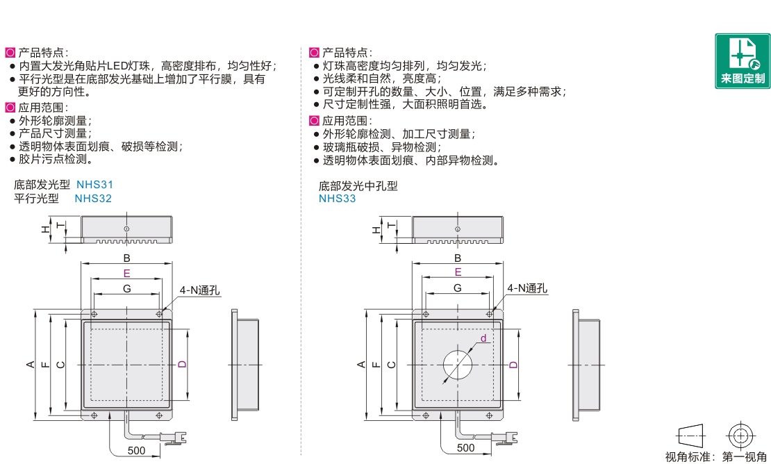 | NHS31 | 面光源 | 底部发光型 | 标准 |