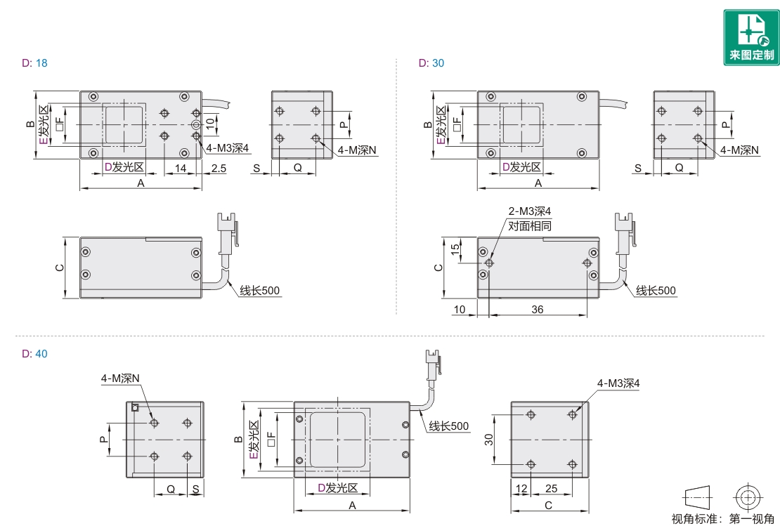 ● 光源配有标准3米延长线,特殊长度和材质需要备注或另外咨询;