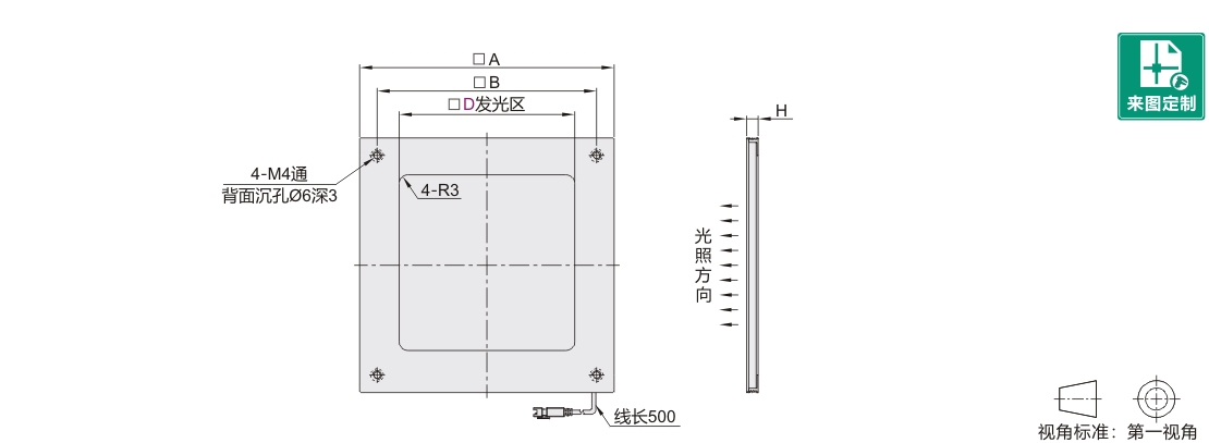 ● 光源配有标准3米延长线,特殊长度和材质需要备注或另外咨询;