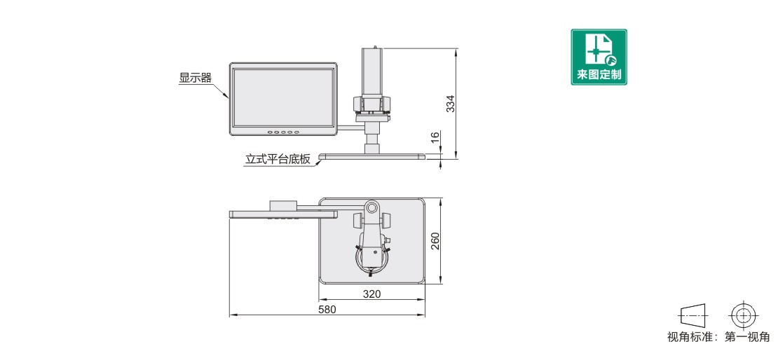 显微镜头、托架、立柱、底板、13.3寸显示器、 显示器支架、电源适配器、高清线/分支线 |