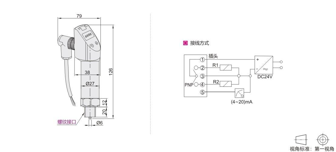 可输出三线制(4~20)mA电流信号和PNP开关信号 ,以国际先进的工业线MCU为核心,