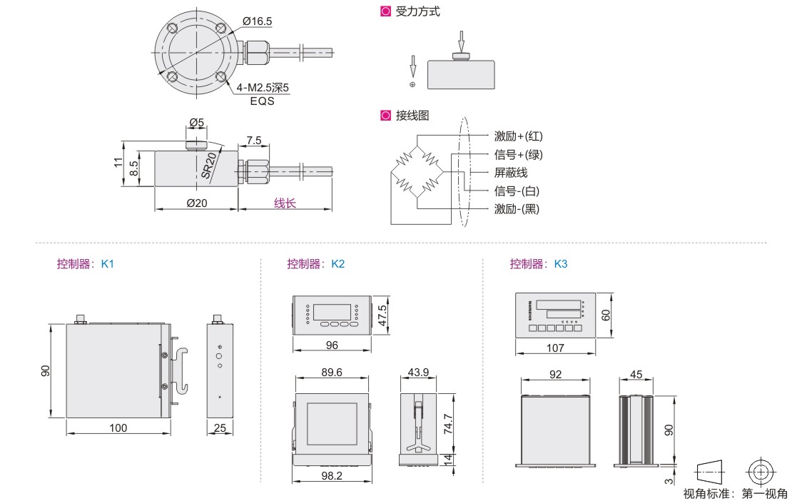 力传感器 压式 圆柱型 量程5~2000kg 外壳尺寸Ø20×11