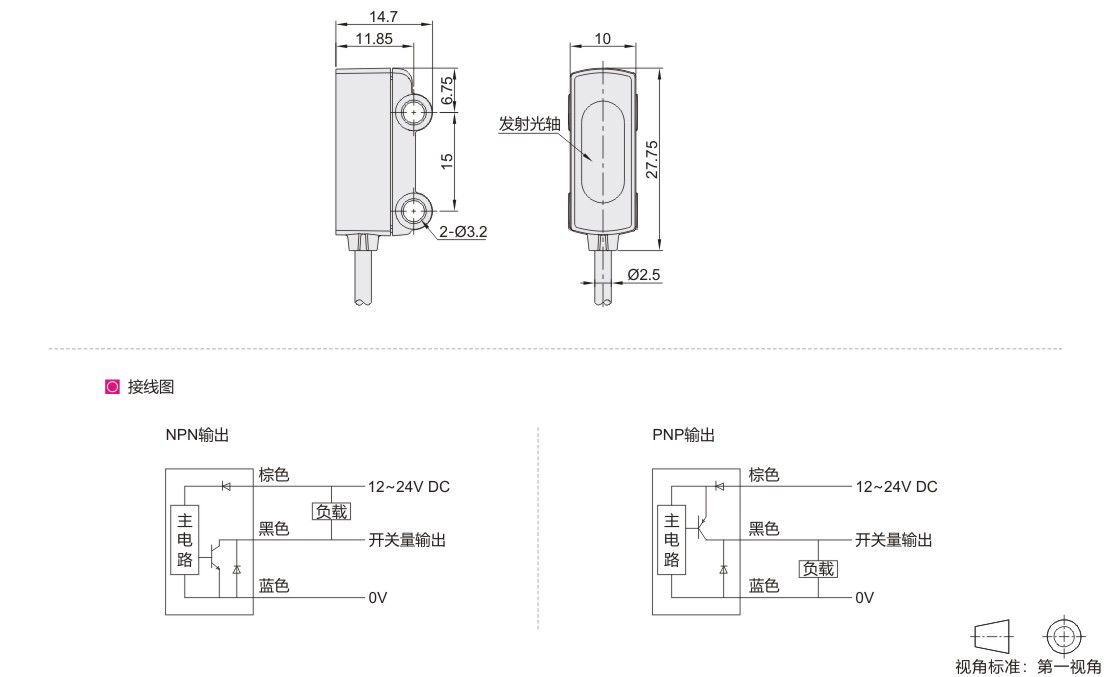 光电传感器 小方型 检测距离1500mm 对射式•红光