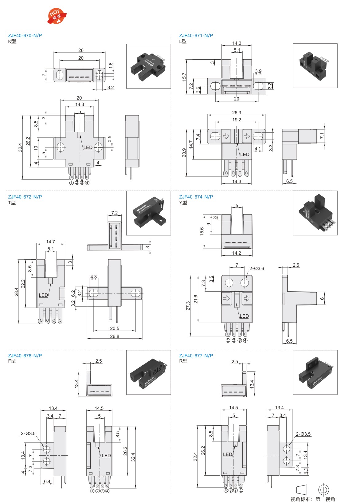 怡合达自营 经济型槽型传感器 标准型 插件式 有效检测槽宽5mm