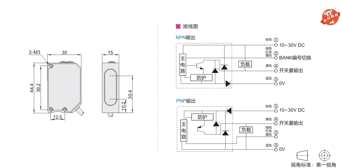 | 开关量输出 | NPN/PNP集电极开路输出,≦100mA Max/30V DC |
