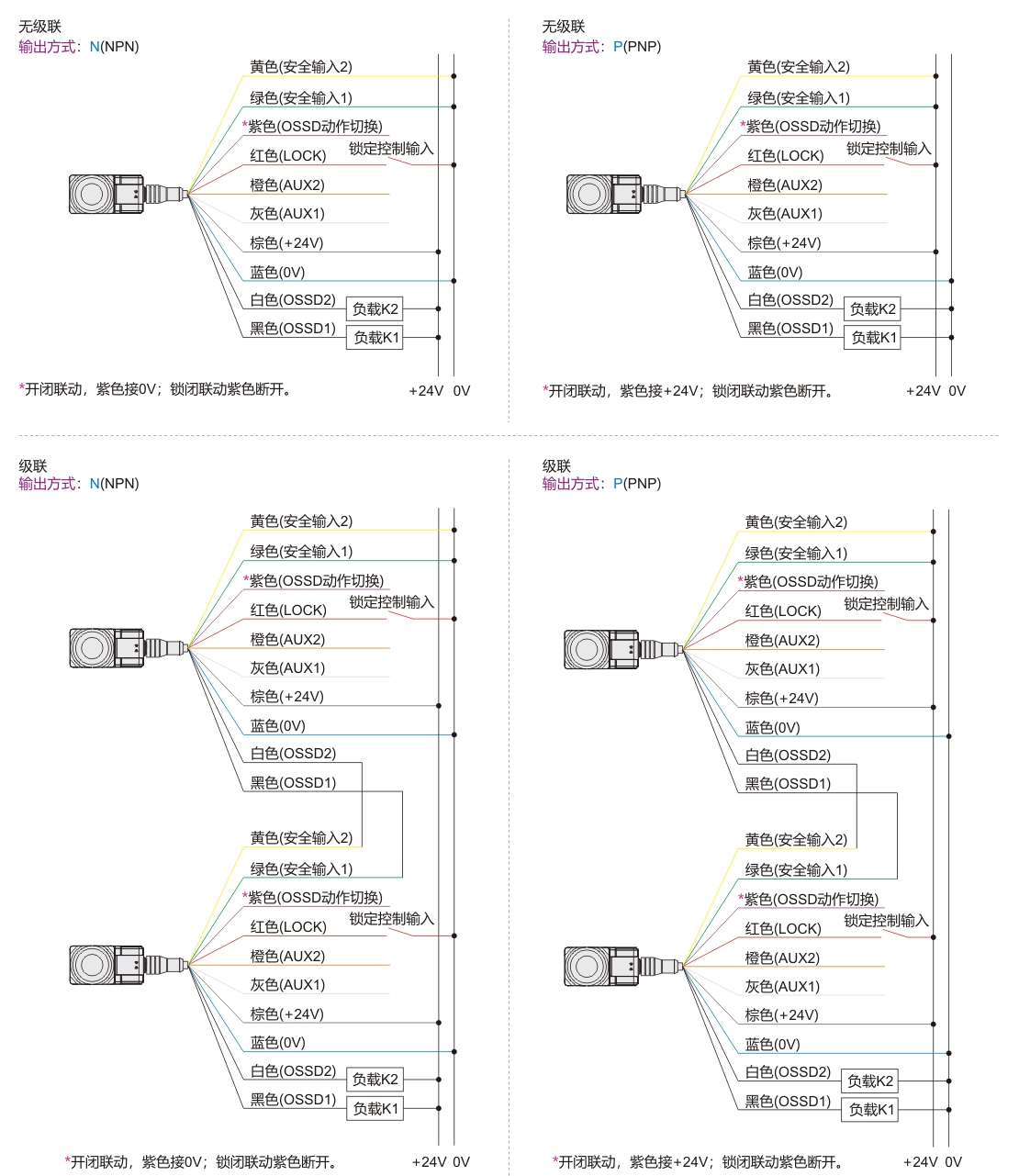 | 锁定控制输入 OSSD动作切换输入 |