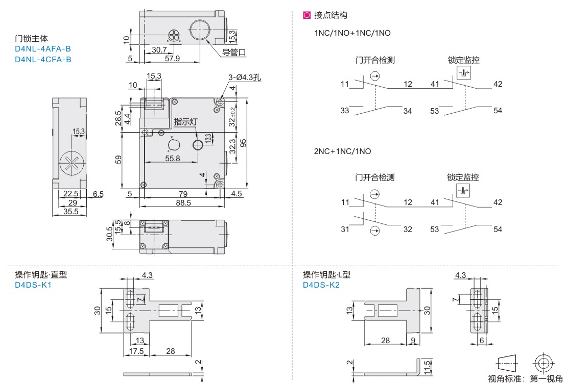 | D4NL-4AFA-B | 安全门锁 | 门锁主体 | — | 1NC/1NO+1NC/1NO | 塑料 |