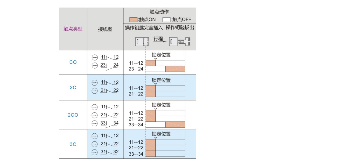 | 代码 | 触点类型 | ||||||||||||||||||