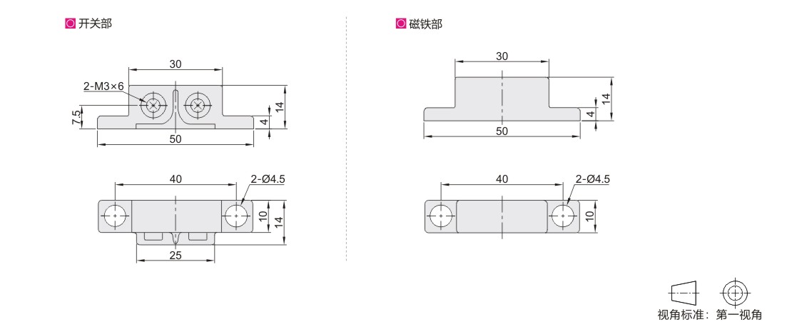 ● 以永久性磁铁气动磁簧或者切换触点的接近开关;