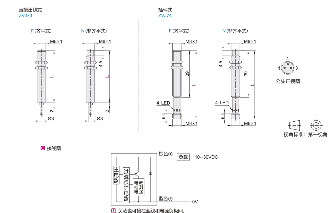 | ZVJ73 | 标准型 | M8 × 1 | 直接出线式 | 不锈钢 | — |