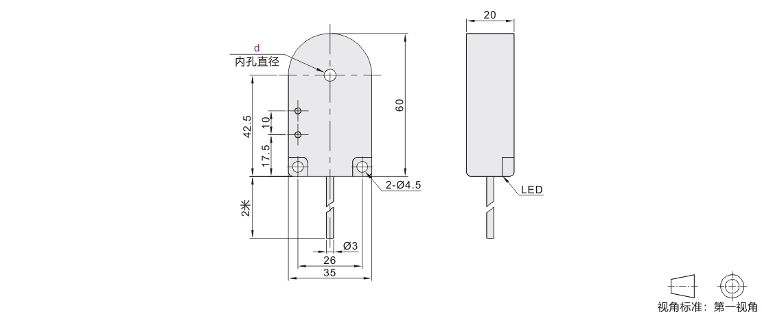 电容式接近传感器 环型 标准型带短路保护 非齐平式安装 直接出线2m/3芯线 有效检测孔直径Ø5~21mm