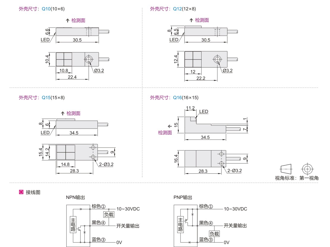 电感式接近传感器 标准型 方型Q10/Q12/Q15/Q16