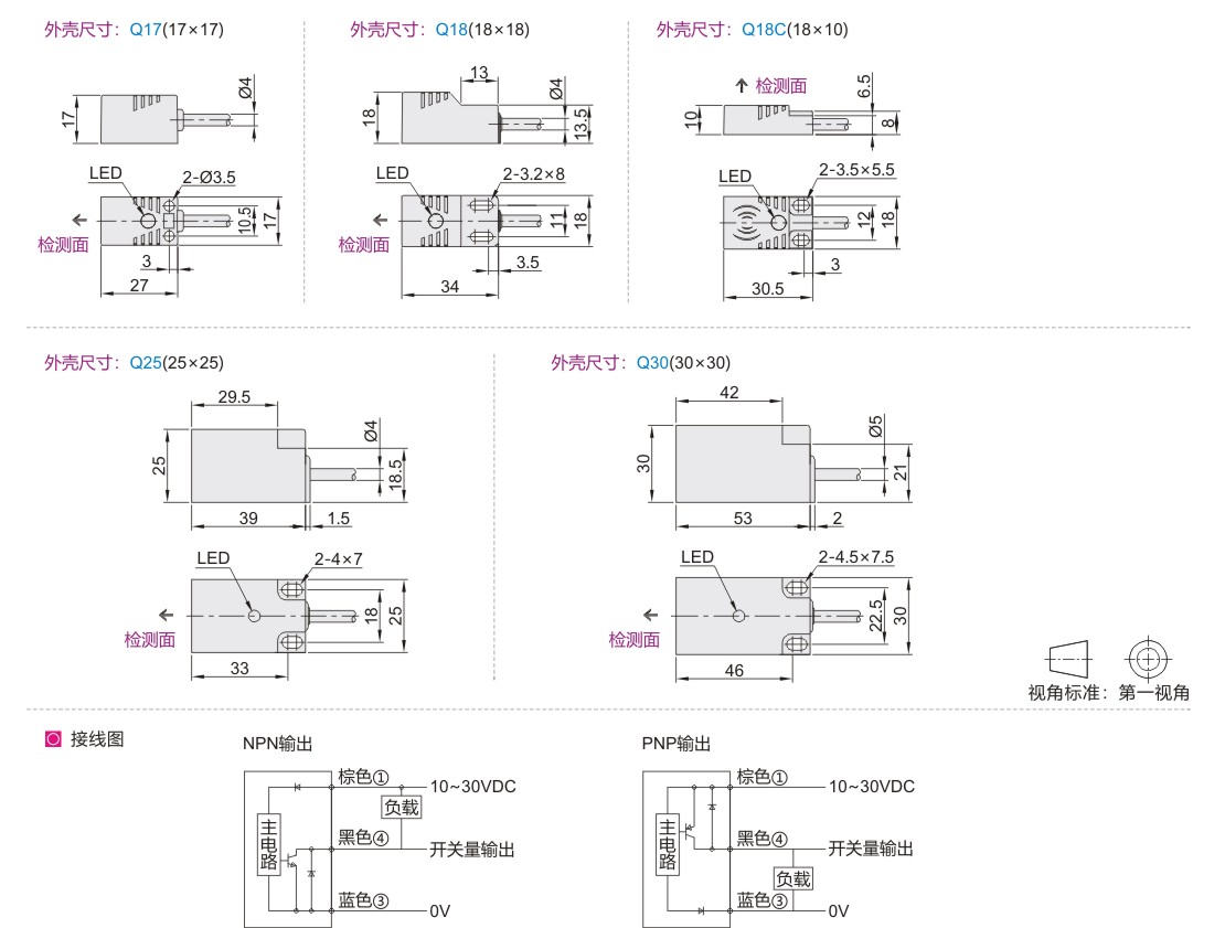 电感式接近传感器 标准型 方型Q17/Q18/Q18C/Q25/Q30