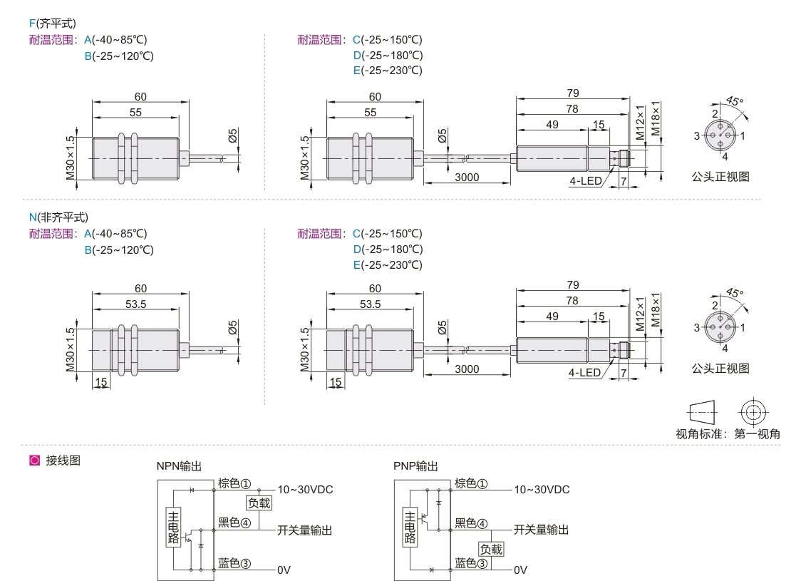 耐温范围C/D/E:为插件式,适配连接线需单独购买。