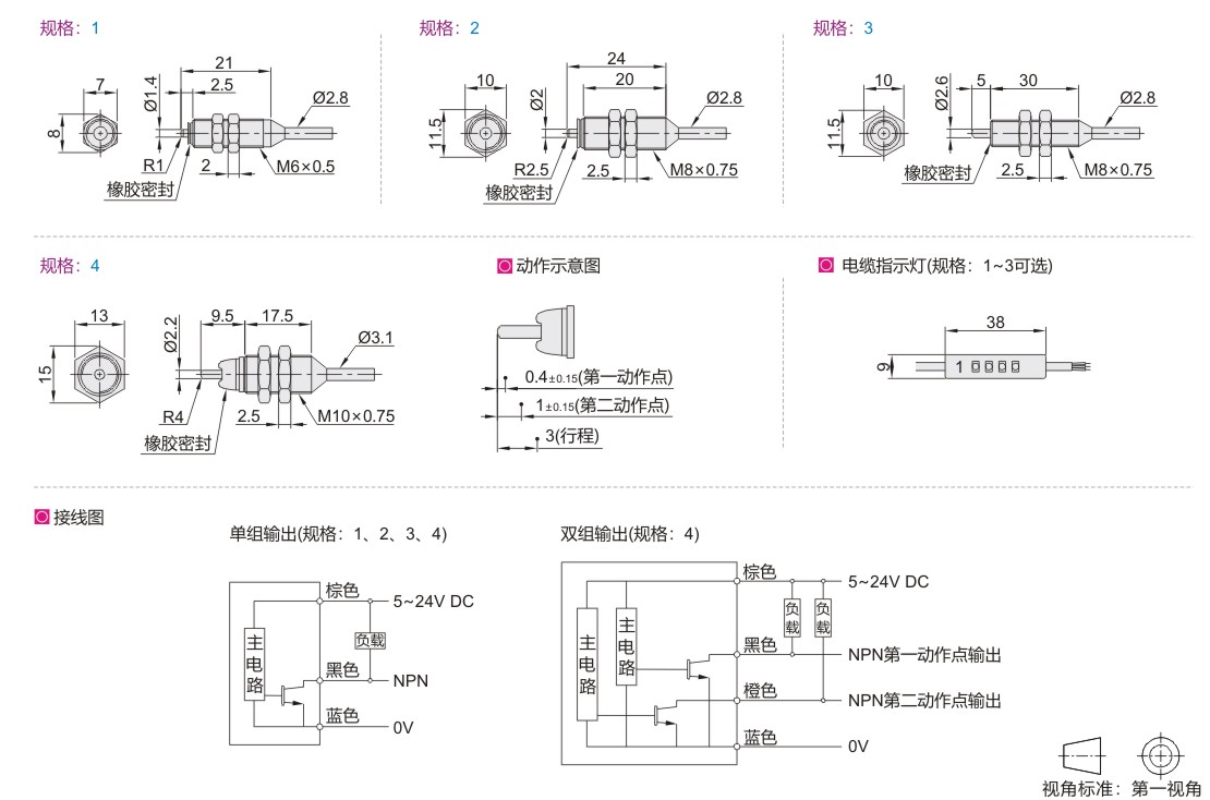 | 输出方式 | NPN常开(NO)/NPN常闭(NC)型号可选 | |||