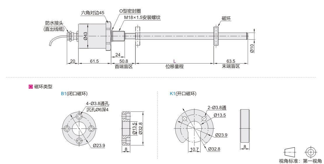 传感器内置安装时,选用闭口磁环;传感器外置安装时,选用开口磁环。