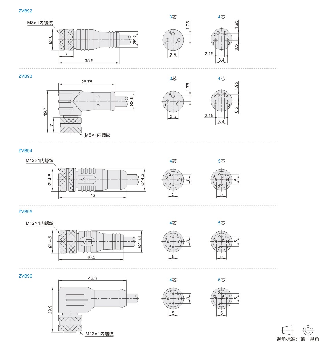 | 代码 | 类型 | 安装尺寸 | 接头类型 | 是否带屏蔽 | 适用传感器 |