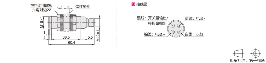 | 机械数据 | 连接方式 | M12/4针 连接器 | |