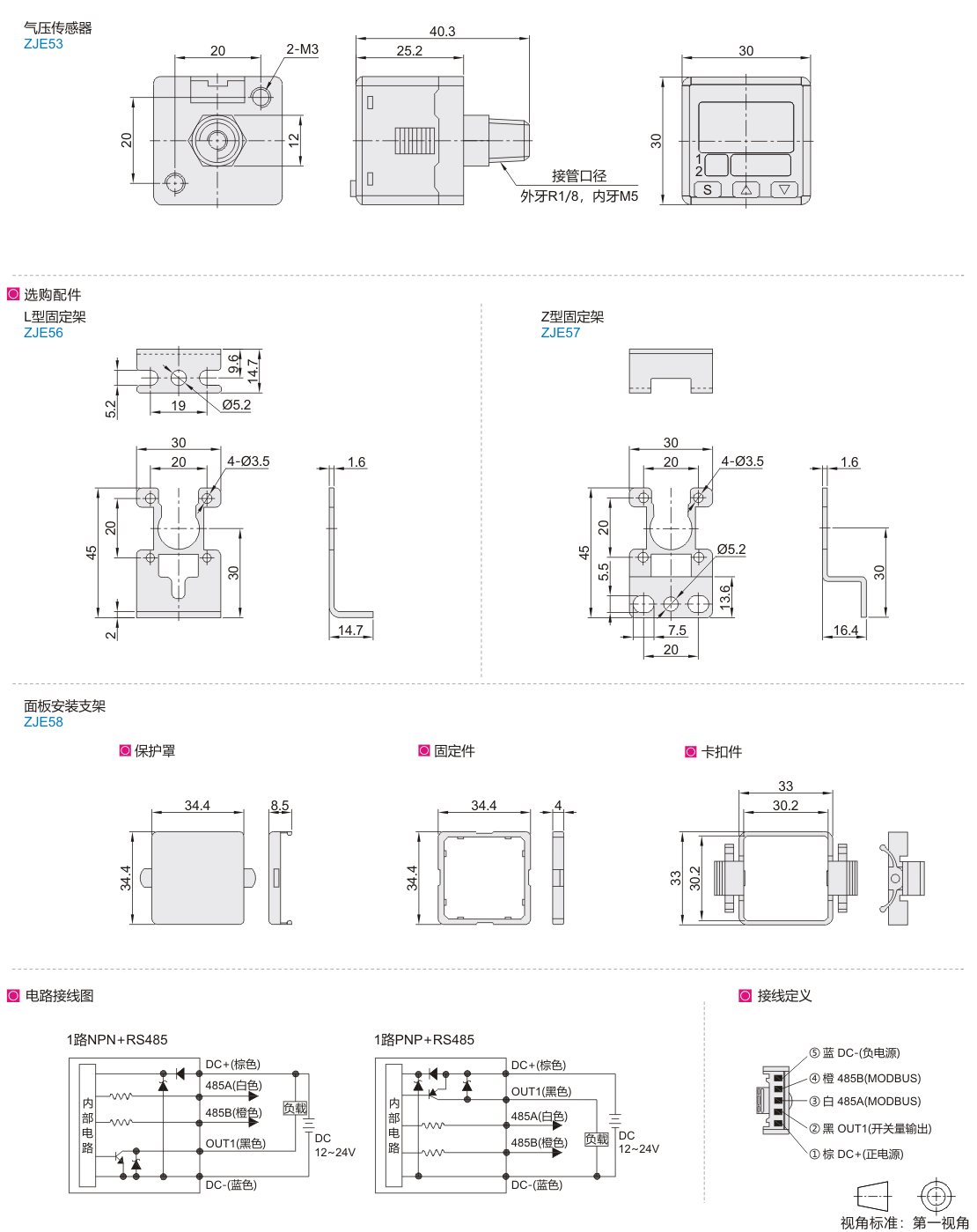 | ZJE53 | 气压传感器 | 三色双画面/RS485通讯 |