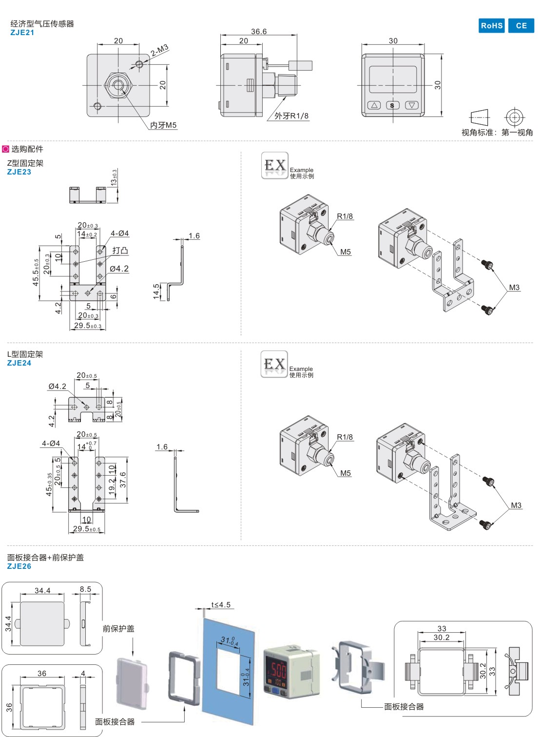 ZJE23(Z型固定架) ZJE24(L型固定架) ZJE26(面板接合器+前保护盖) |