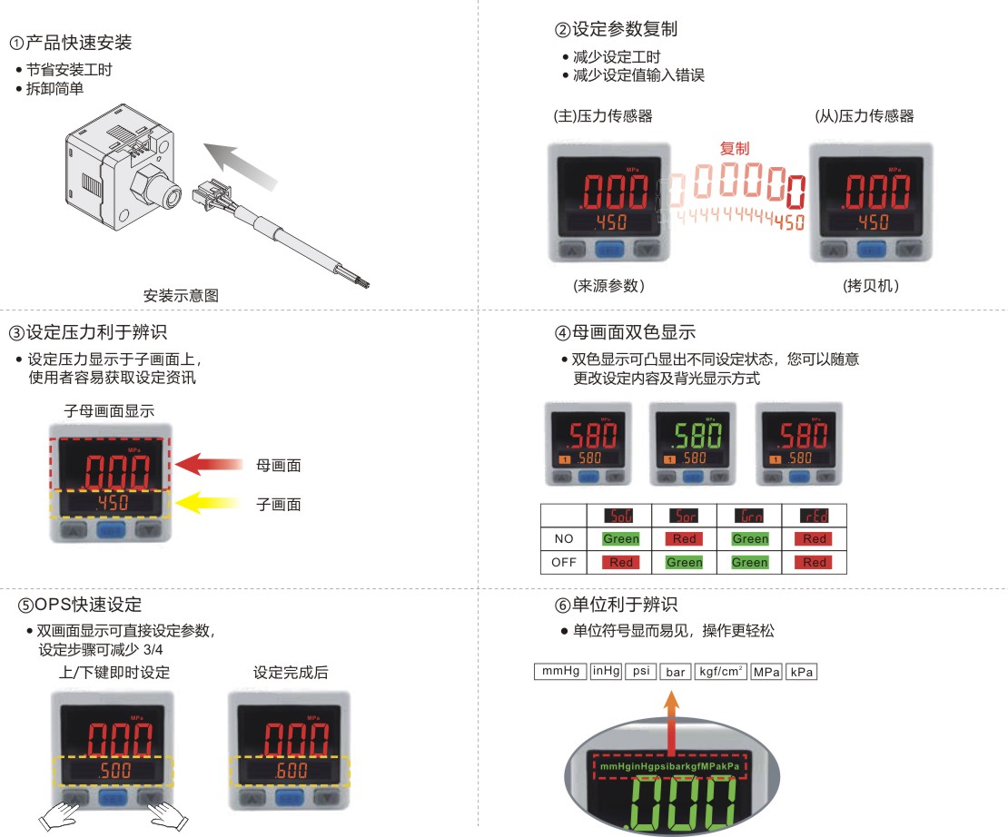 | 设定压力范围 | -101.0~101.0KPa | 10.0~-101.3KPa | -0.100~1.000MPa | |