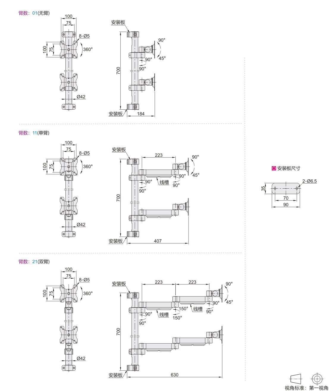 经济型显示器支架 无键盘 双显示器 立柱壁挂式安装 立柱锁紧•普通型•无臂/单臂/双臂