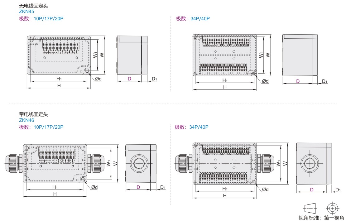 | ZKN45 | IO端子型 | 无电线固定头 | 塑料 | IP66 |