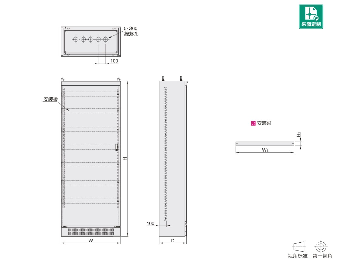 ● 五个直径60的敲落孔出线。