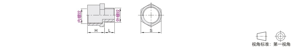 特点:小螺纹外转换成大螺纹内,结构简单,方便连接。