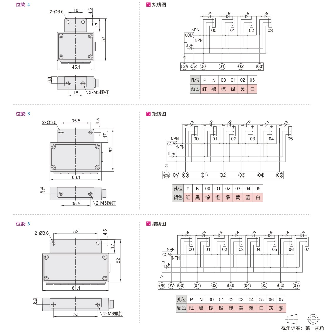 ● NPN、PNP双极性可切换。NPN-绿灯;PNP-红灯;