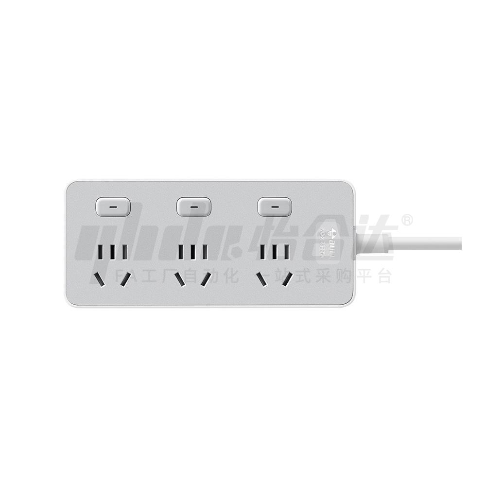 公牛3位5孔 多开关 1.8米有线排插 晨雾白