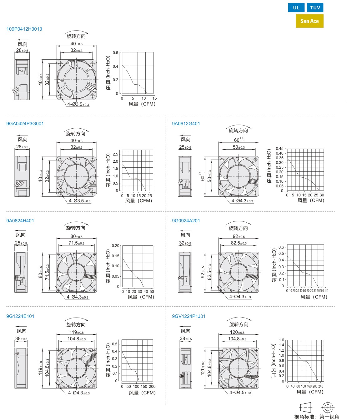 日本三洋San轴流风扇 Ace品牌 DC型 双滚珠轴承 UL/TUV认证