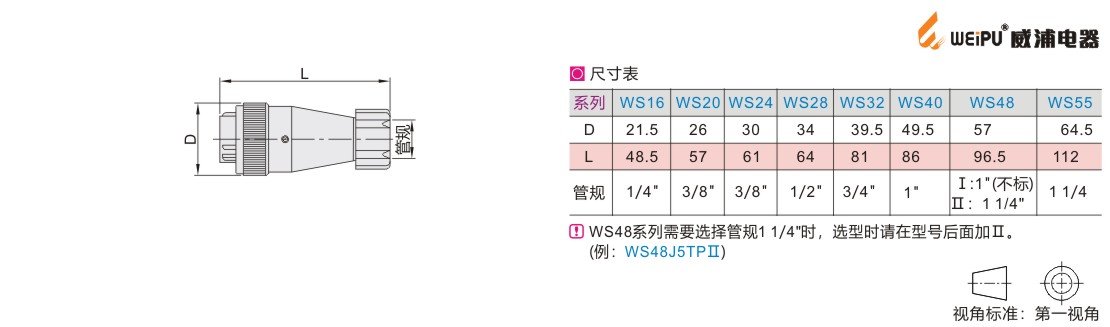 威浦 标准型 圆形连接器 WS系列 直式金属软管插头