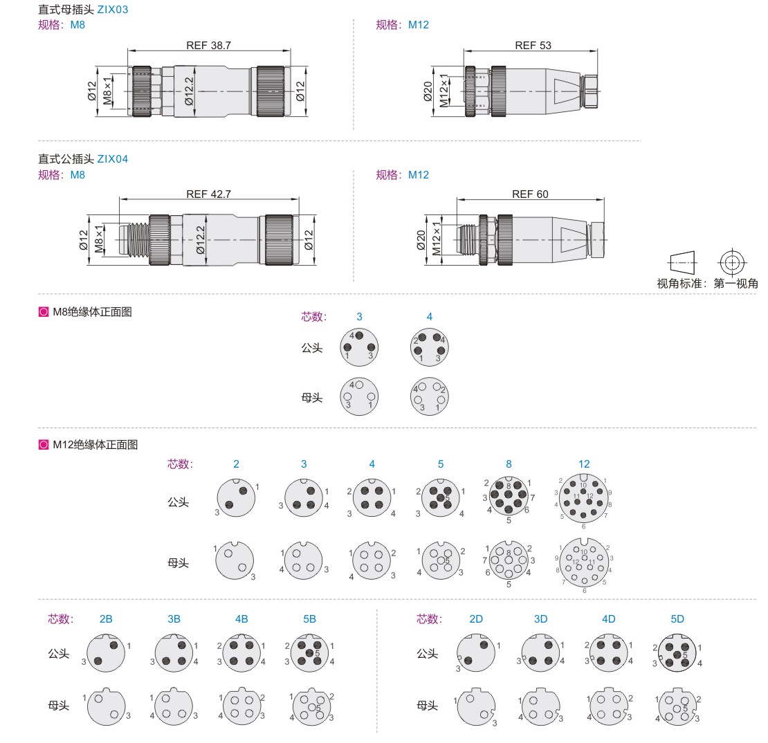 | 直式母插头 ZIX03 直式公插头 ZIX04 直式插头套装 ZIX05 |