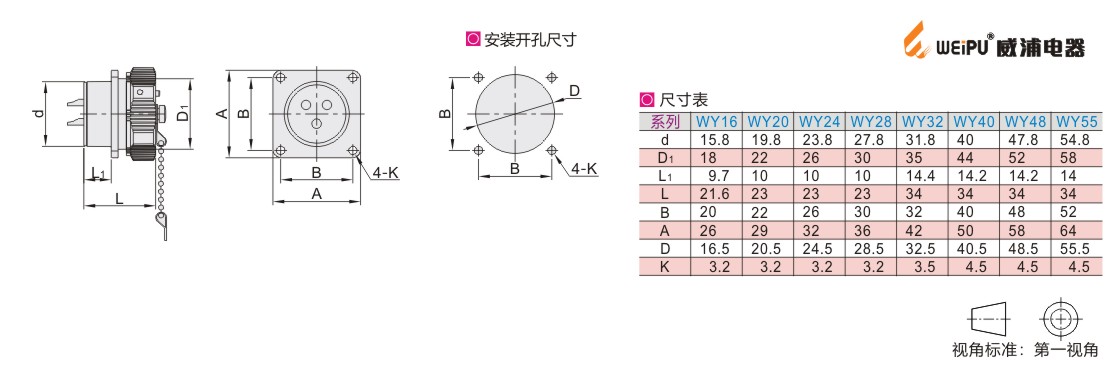 威浦 WY系列 防水型 圆形连接器 方形法兰插座