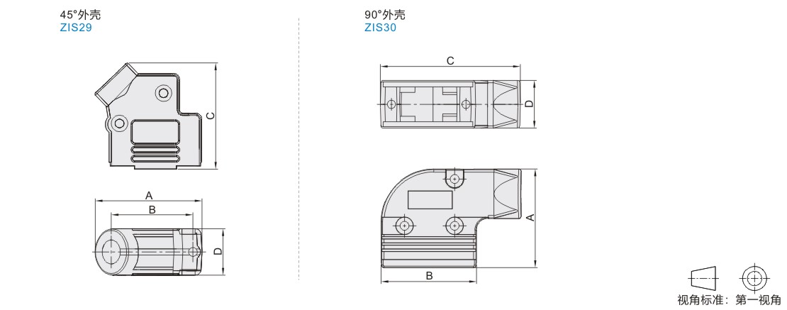 | ZIS29 | D-sub连接器 | 外壳 | 45° | 锌合金(镀镍) |