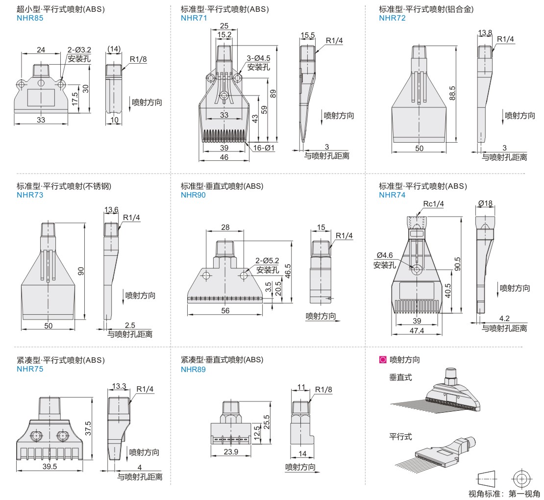 | NHR85 | 多点形 | 超小型 | 外螺纹型 | 平行式 | ABS | 7Bar | 70℃ | 压缩空气 |