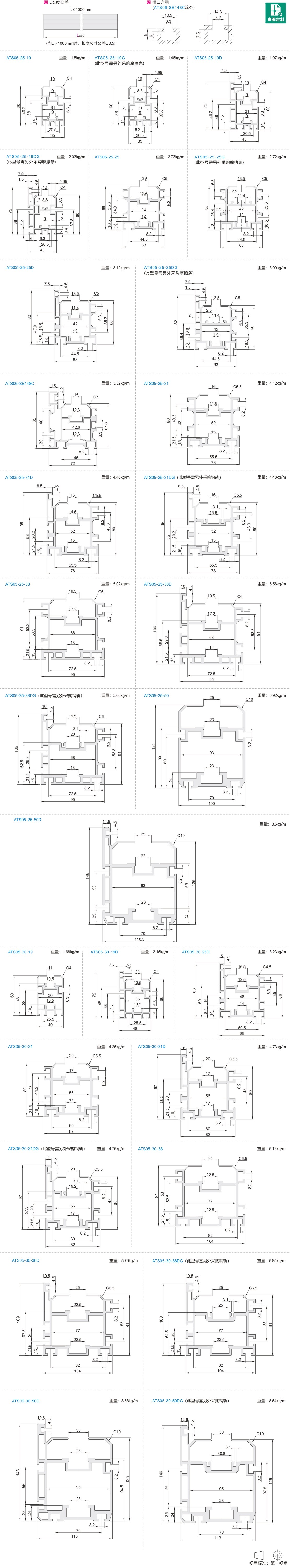 ATS06-SE148C型材槽口与其他规格不一致,可选用标准的M6/M8六角螺母。