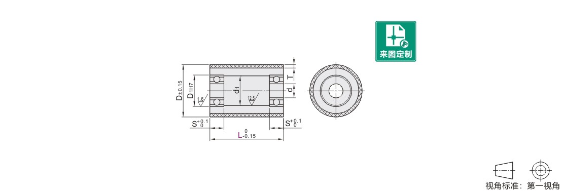 | 型号 | L | T | D | d | D1 | d1 | s | 使用轴承 | |