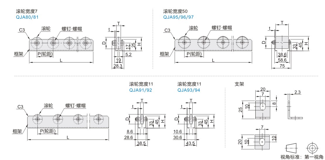 | 滚轮 | 框架 | 轴承/螺钉·螺帽 | 支架 | 螺钉·螺帽 | 支架 | ||||||