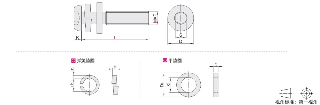 内六角平圆头组合螺钉 组合型 SUS304材质 带平垫圈、弹簧垫圈 粗牙