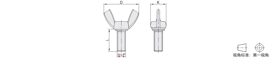 专门为方便手拧操作而设计,头部的蝶形设计增大了横向受力面,使手