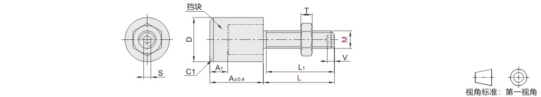 | TDC41 | 调节型 | 平头圆柱大挡块 | 螺纹部内六角孔型 | 粗牙 | SCM435 | 铬酸盐 光泽处理 |