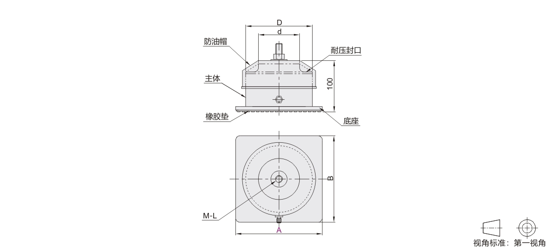 | 主体 | 底板 | 耐压封口 | 防油帽 | 主体 | 底板 | ||